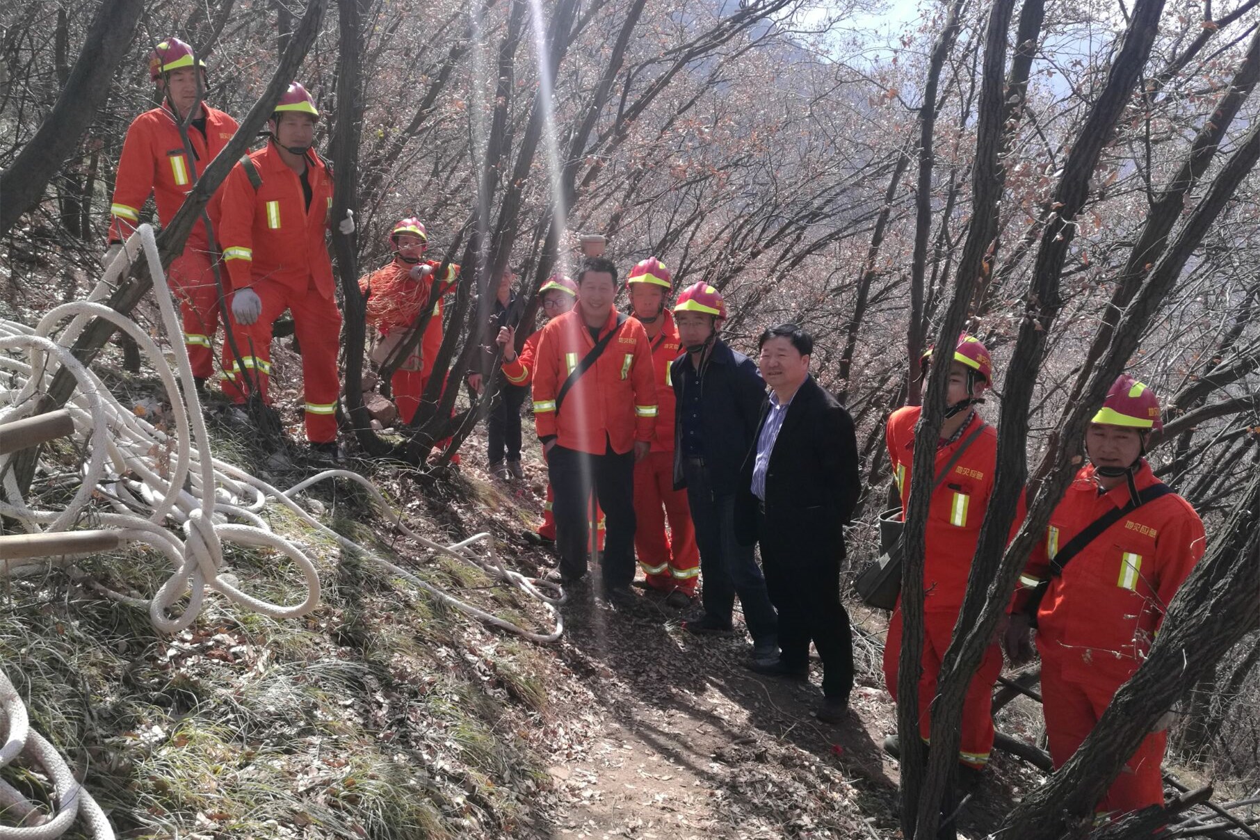 ? ? 該項目由公司所屬西安地質(zhì)災(zāi)害智能監(jiān)測預(yù)警技術(shù)服務(wù)中心承擔(dān),工區(qū)山高坡陡、荊棘密布,給勘查工作帶來極大困難。公司領(lǐng)導(dǎo)一行踏著崎嶇的山路來到施工現(xiàn)場,聽取項目負(fù)責(zé)人工作匯報,認(rèn)真查看現(xiàn)場施工安全狀況,仔細(xì)詢問施工管理和進(jìn)度,并強調(diào),要嚴(yán)格加強現(xiàn)場安全教育管理,保證工作質(zhì)量和安全的前提下推進(jìn)施工進(jìn)度,克服一切困難,確保勘查工作順利進(jìn)行。