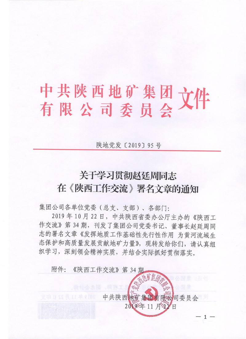 轉發:關于學習貫徹趙廷周同志在《陜西工作交流》署名文章的通知