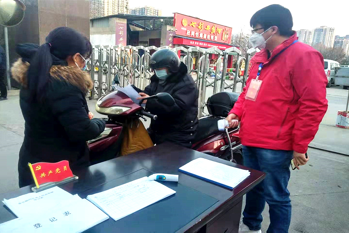 ??? 帶頭值守,戰“疫”在一線。公司黨委把打贏疫情防控阻擊戰作為對黨員干部思想覺悟、工作作風的一次綜合檢驗,在第一時間發出了致全體共產黨員的公開信,號召全體黨員提高政治站位,充分發揮戰斗堡壘和先鋒模范作用,堅守一線。黨員干部面對疫情迅速反應,舍小家、顧大家,放棄休息,堅持戰斗在一線。各黨支部書記、部門負責堅持每日向公司疫情防控領導小組上報職工疫情動態情況,做到省內省外“一個不落”。對西安隊部、周至基地、寶雞基地三個小區300多戶住戶進行排查登記,做到防控“全覆蓋”。從1月27日開始,黨員干部、黨員志愿者組成應急隊伍,佩戴黨徽在西安隊部、周至基地、寶雞基地家屬院門口輪流值班,嚴格做好疫情防控應急工作,保證小區正常的生活秩序。