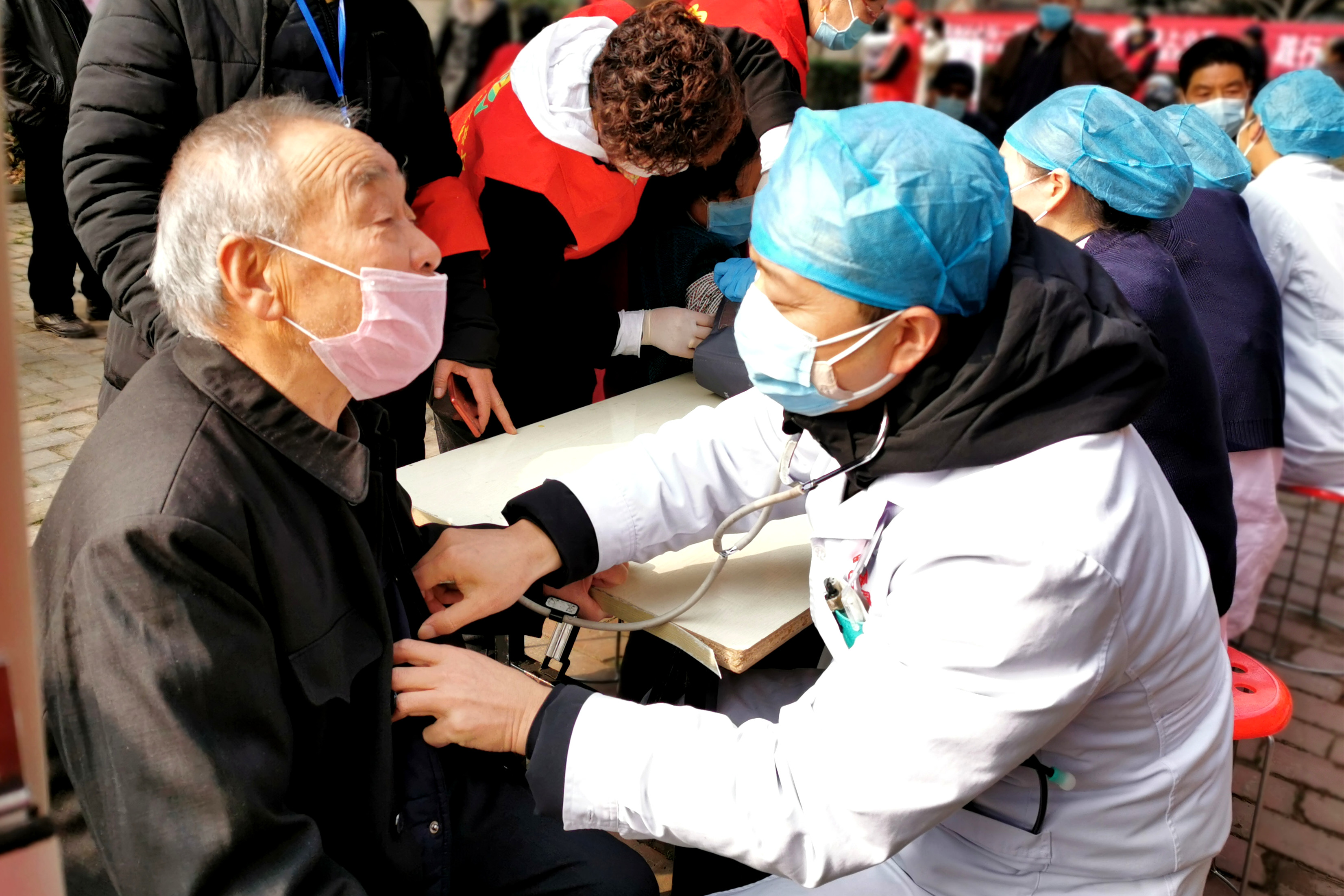 ? ? 診療志愿者同樣受到職工家屬的熱烈歡迎,量血壓、測心率、測血糖……還要不時停下來解答職工家屬的疑問,普及健康知識,叮囑大家要注意飲食、適當(dāng)鍛煉、加強健康保健,快樂生活。