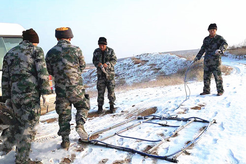 ? ? 正值寒冷季節,工區最低溫度-28℃,在做好疫情防控的前提下,物化探隊工程物探勘查院技術人員不畏寒冷,艱苦奮斗,依然堅守工作崗位,嚴格按照相關技術要求,認真開展野外勘查工作,詮釋了共產黨員的高尚情操。