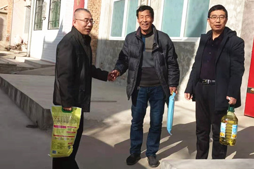 ? ?2月3日,公司黨政負(fù)責(zé)人李新勝前往扶風(fēng)縣天度鎮(zhèn)天度村,看望慰問扶貧對象馬巨海一家,送去米面油等慰問品,送去了新年的祝福。集團(tuán)公司駐村扶貧干部蘇曉強(qiáng)陪同慰問,公司副總經(jīng)理、工會(huì)負(fù)責(zé)人龐日軒一同前往。