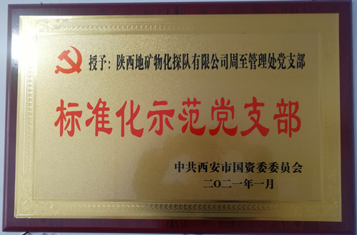 ? ? 近日,西安市國資委黨委對2020年度黨建“雙百”品牌標準化示范黨支部、黨員示范崗進行表彰,我公司周至管理處黨支部榮獲“2020年度西安市國資委系統(tǒng)標準化示范黨支部”稱號、工程物探勘查院黨支部書記王水同志榮獲“黨員個人示范崗”稱號。