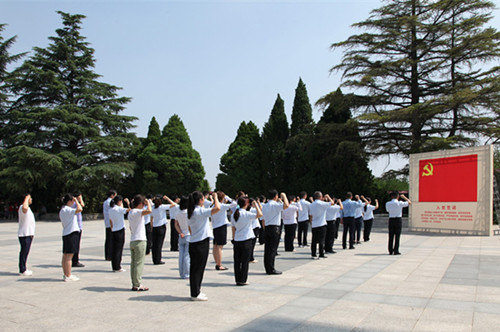 ? ? 在烈士紀(jì)念碑前,全體黨員干部向革命先烈敬獻(xiàn)花籃、三鞠躬,并在黨旗下莊嚴(yán)宣誓,重溫了入黨誓詞。在講解員的宣講下,大家參觀了陳列展示和起義舊址,詳細(xì)了解了起義的歷史背景和全過程,感受到了先烈們?yōu)闋幦∶褡褰夥哦⒂聭?zhàn)斗的英雄氣概和老一輩革命家無私奉獻(xiàn)的革命精神。