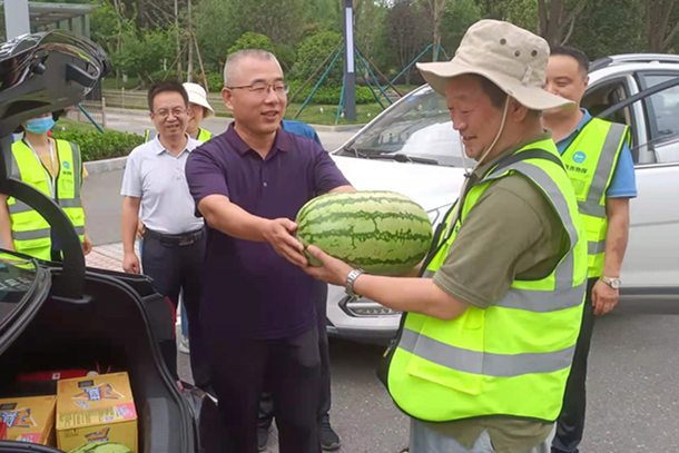 ??? 李新勝一行為一線職工送去了西瓜、飲料等夏季防暑降溫物品,同時鼓勵大家繼續(xù)發(fā)揚不怕苦、不怕累、攻堅克難的地質(zhì)精神,為公司的發(fā)展貢獻力量。?