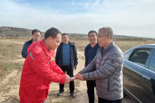? ? 10月15日,公司黨委書記、執行董事、總經理李新勝,副總經理余常忠、龐日軒一行,前往工程物探勘查院內蒙古地質鉆探及瞬變電磁勘探項目部進行檢查慰問。