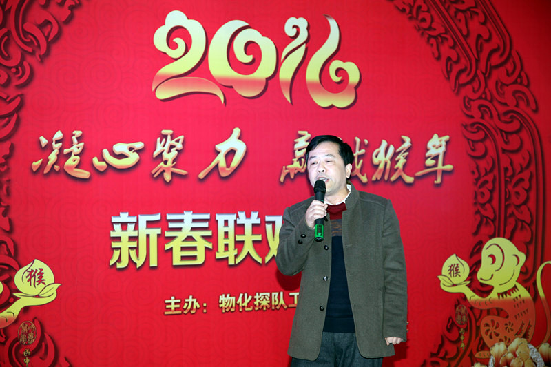 ??? 隊長王新坪致新春賀詞,他說:2015年在總公司的正確領導下,物化探隊創新發展,各項工作取得了顯著的成績。2016年按照總公司的新要求和物化探隊“大地質 大物探 大發展”的經營思路,凝心聚力,攻堅克難, 贏戰2106。全體干部職工一定要奮力搏擊,敢于擔當,攜手同心,用智慧和汗水共譜物化探隊新篇章!王新坪代表物化探隊領導班子,祝全隊職工在猴年來臨之際,身體健康,闔家幸福,生活美滿,事業有成。