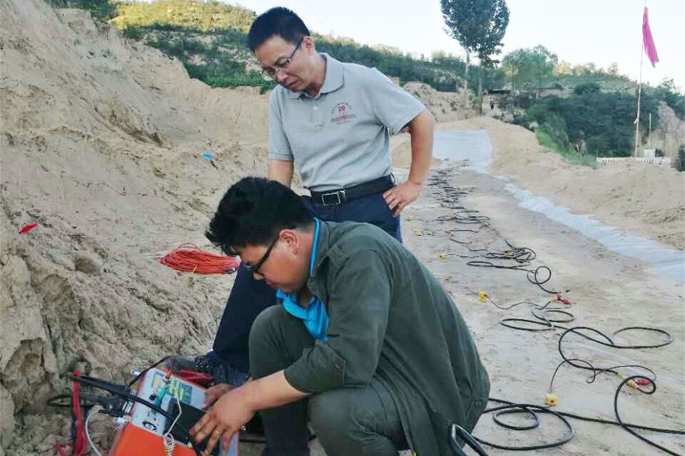 ? ? 物化探隊高度重視,組建了由總工程師劉建利帶隊、 “西安地質災害智能監測預警技術服務中心”、綜合地震公司等部門組成的20多人的勘查隊伍,在第一時間到達地質災害現場,對滑坡體現場踏勘,結合以往地災勘查研究成果,采用高密度電法、二維地震、地質雷達三種物探方法進行綜合勘查。“陜西省突發地質災害應急排查總隊”辦公室主任李衛華及兄弟單位有關專家親臨現場指導。