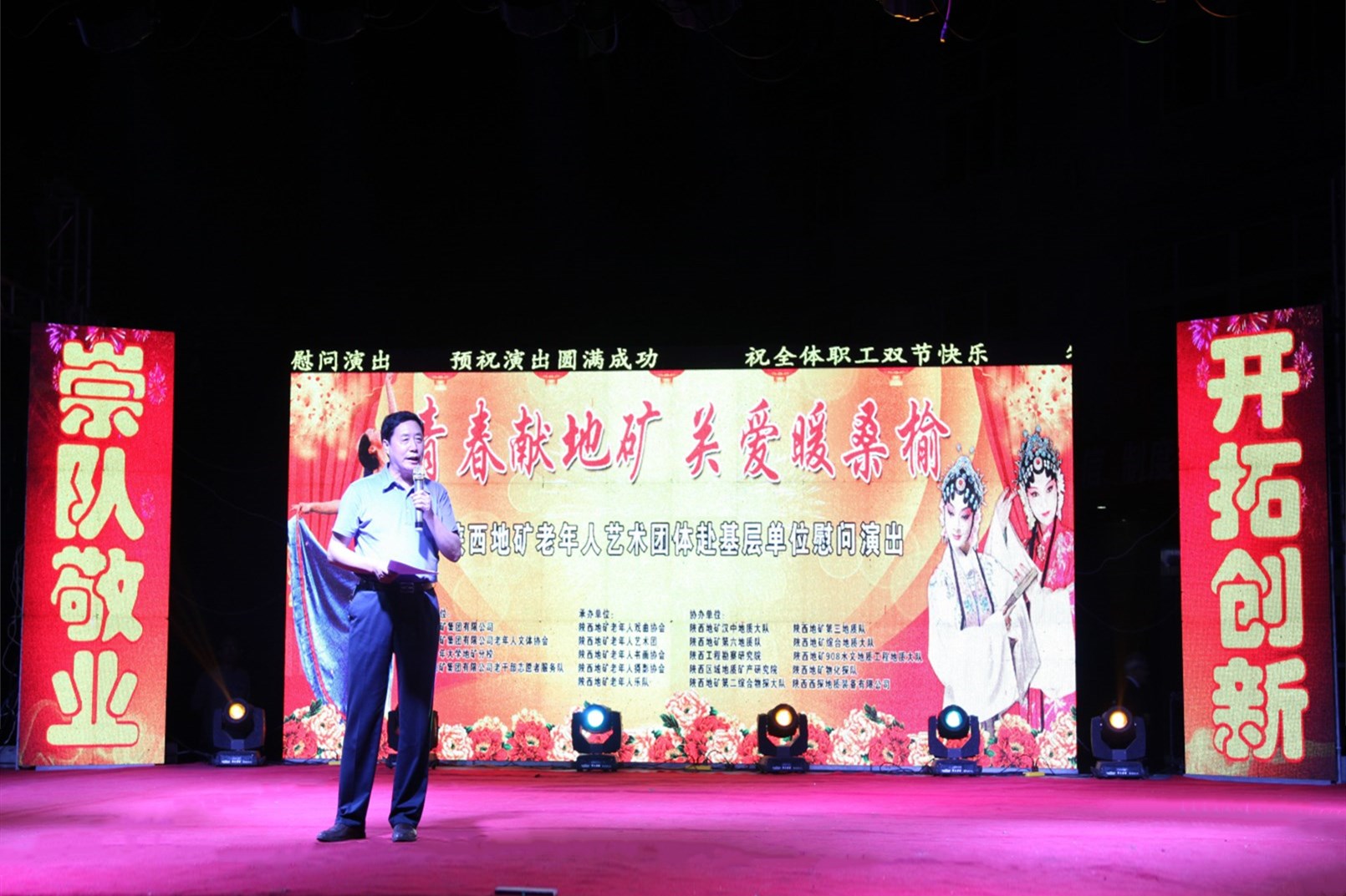 ? ? 在國慶、中秋節來臨之際,9月28日晚,陜西地礦老年人藝術團“青春獻地礦、關愛暖桑榆”主題晚會在我隊慰問演出,節目精彩紛呈,讓全隊干部職工讓享受了一場別開生面的視聽盛宴。集團公司黨委副書記安增會,離退休管理所主任李崇勇、副主任張寧親臨現場觀看演出。