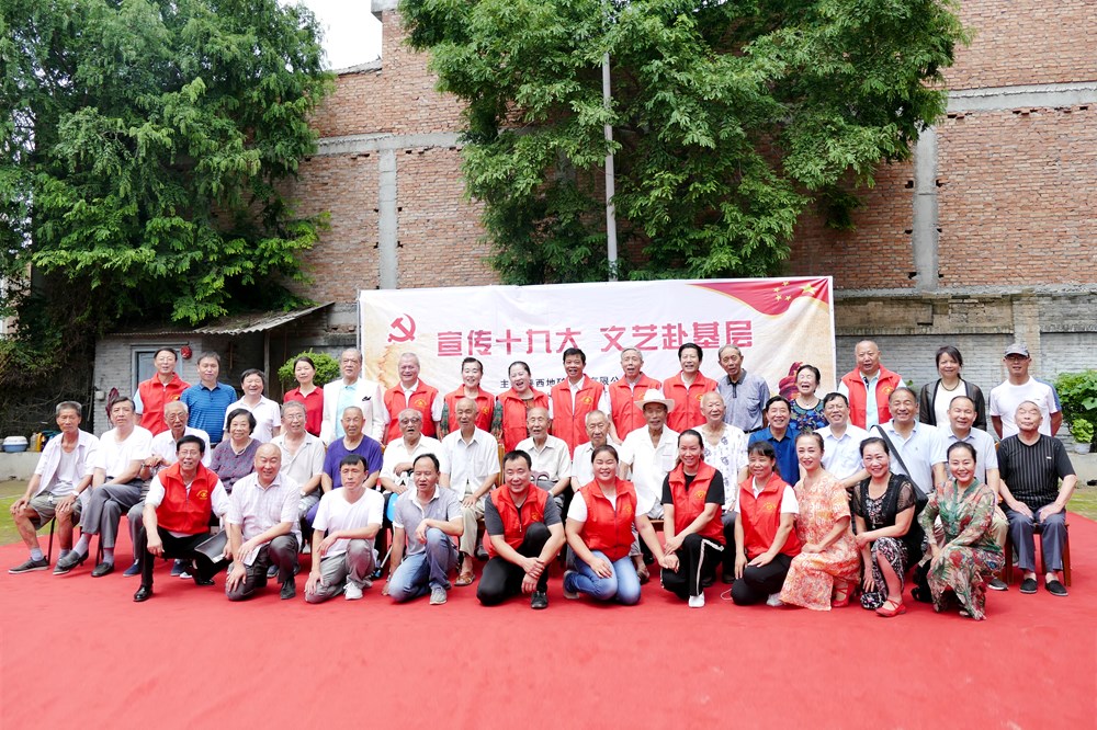 ? ? 7月17日上午,陜西地礦集團文藝小分隊“宣傳十九大,文藝赴基層”主題活動首場演出在物化探隊周至管理處上演。集團公司離退休管理中心主任李崇勇、副主任張寧,隊黨委書記、執行董事、總經理王新坪,黨委副書記、紀委書記、工會主席趙養科出席了演出活動,并與廣大離退休黨員干部職工一同觀看了演出。