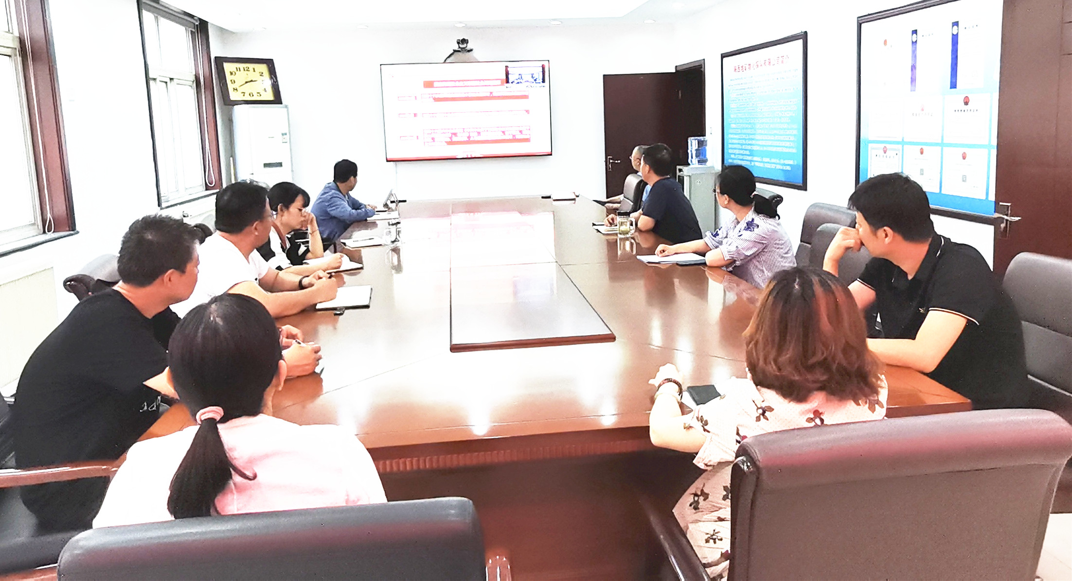? ? 6月16日下午,物化探隊(duì)有限公司班子成員和支部書記參加了省國(guó)資委系統(tǒng)“黨委書記講百年黨史”系列黨課宣講報(bào)告會(huì)(第九講)。省國(guó)資委黨委副書記、主任,黨史學(xué)習(xí)教育領(lǐng)導(dǎo)小組副組長(zhǎng)王海鵬主持會(huì)議并講話。西部機(jī)場(chǎng)集團(tuán)有限公司黨委副書記段克明以《從勝利走向新的勝利——在新的形勢(shì)下堅(jiān)持和發(fā)展中國(guó)特色社會(huì)主義》為題,為黨員干部作宣講報(bào)告。報(bào)告會(huì)以視頻會(huì)形式在二樓會(huì)議室召開。